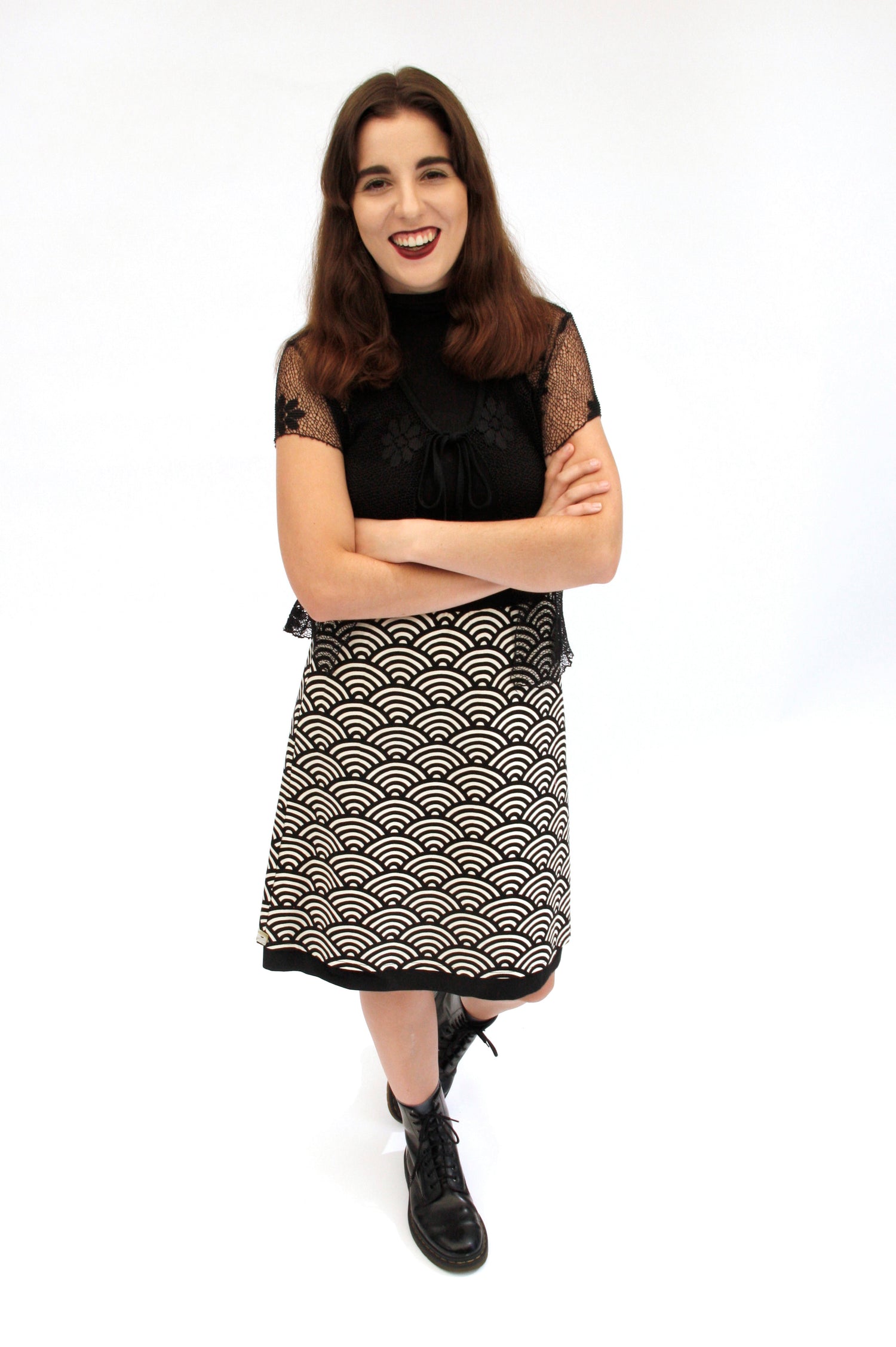 Super comfortable with a cotton lycra waistband. These skirts fall from from the hip in an A line style and are very flattering. Great for travelling and always just look so good on. Suited for summer with just a tee shirt or in winter with boots and leggins.